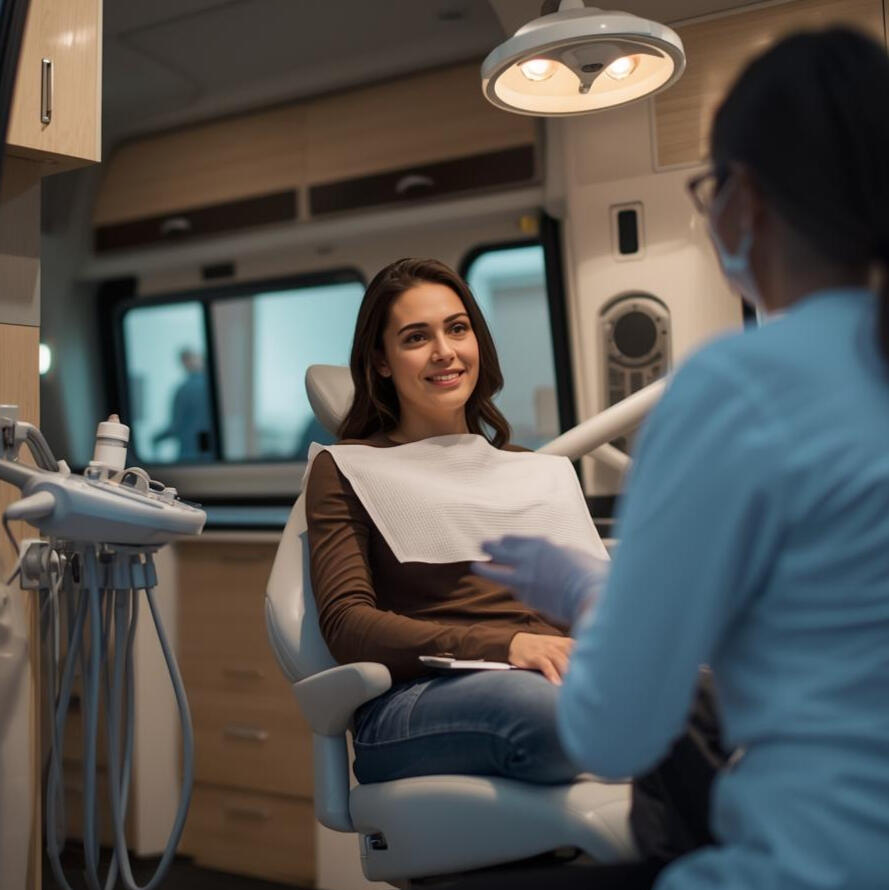 Our dental van is:1. Fully self-contained and professionally fitted2. Equipped to deliver high-quality dental hygiene care3. Clean, discreet, and designed for comfort4. Parked onsite without interfering with daily operations5. All care is delivered inside the van by a qualified dental hygienist.